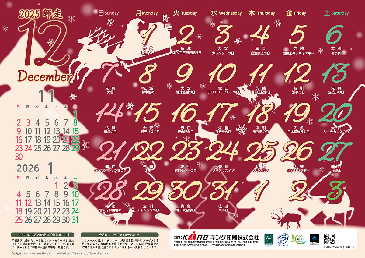 配布しておりました2025年12月のカレンダーを紹介します!