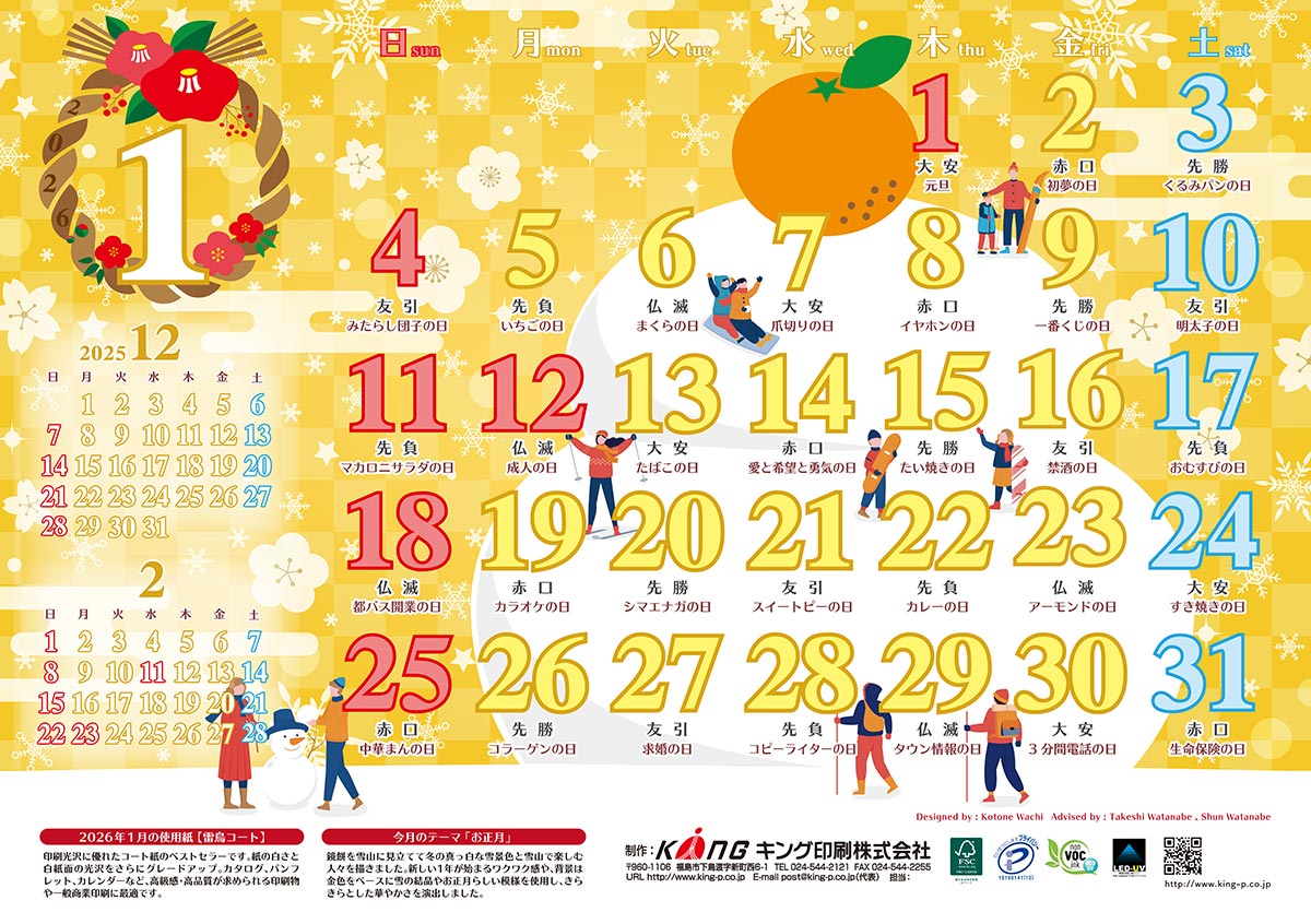 新年最初の1月カレンダーを制作しました。2026年が皆様にとって素敵な一年となりますように…